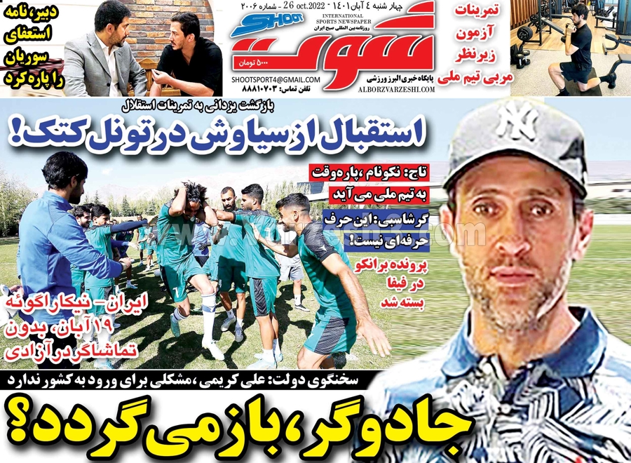 روزنامه شوت - چهارشنبه 4 آبان 1401 | ورزش سه
