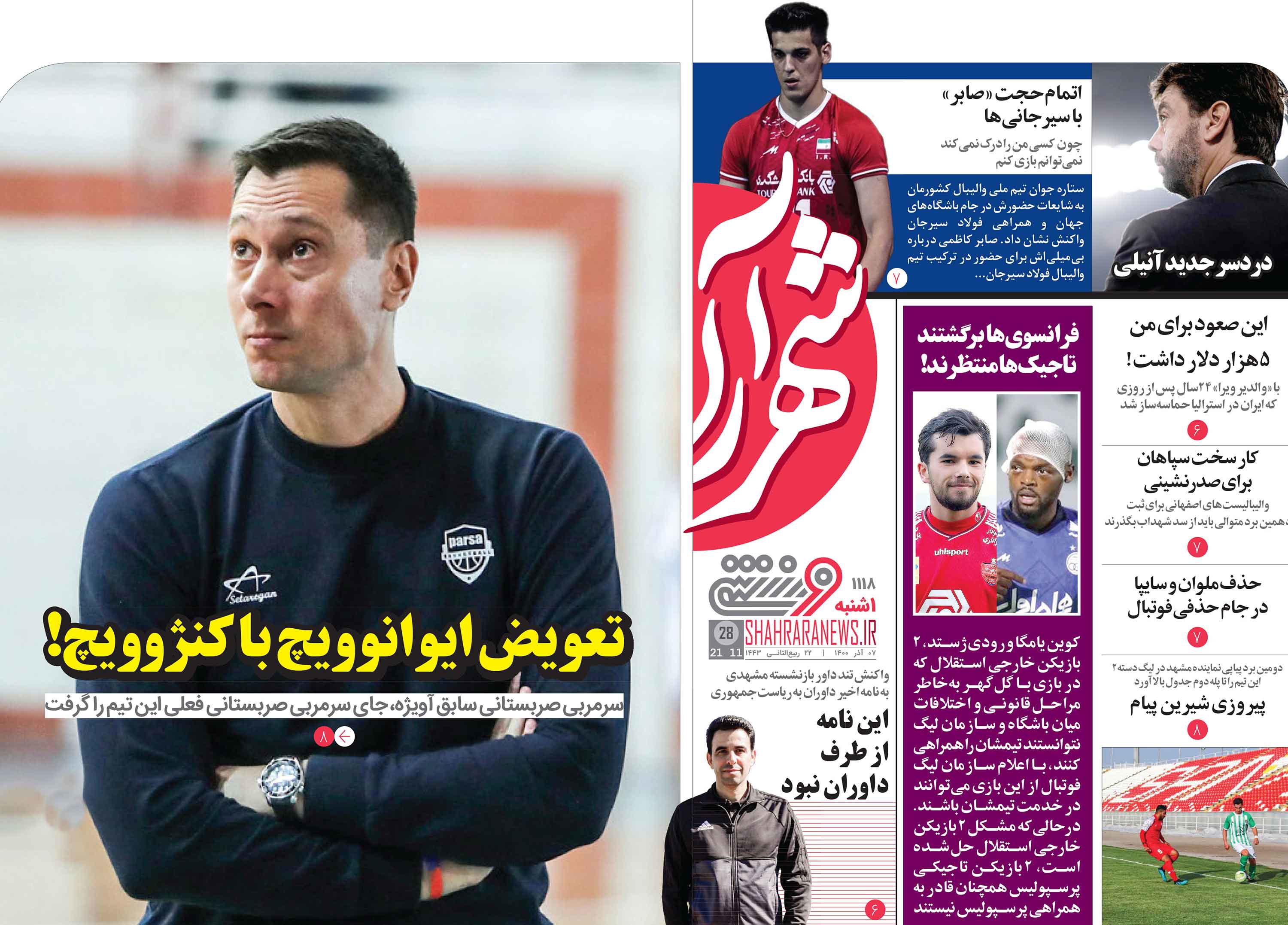 روزنامه شهرآرا - یکشنبه 7 آذر 1400 | ورزش سه