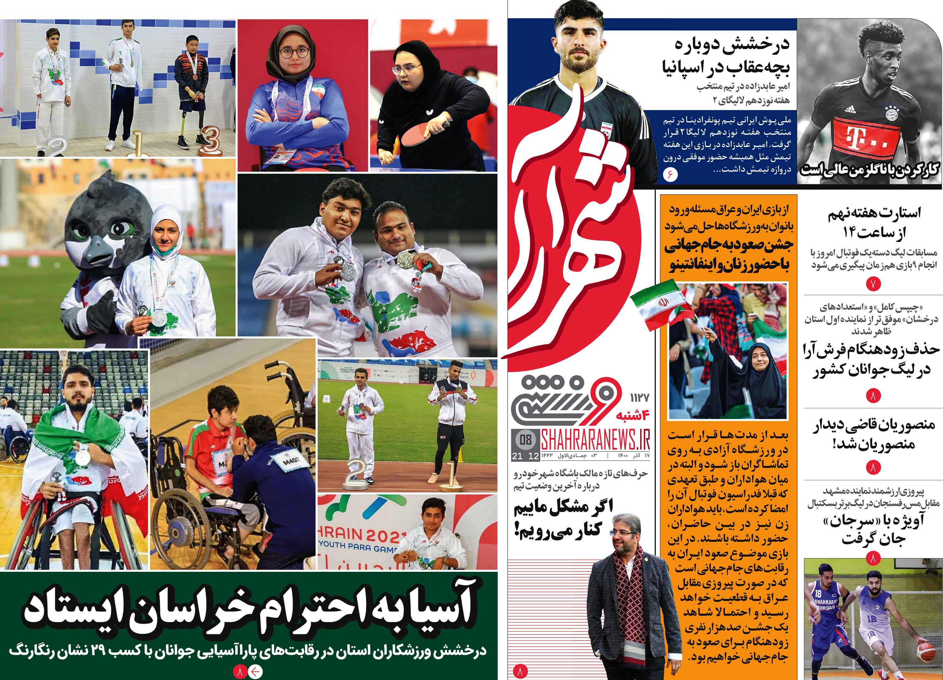 روزنامه شهرآرا - چهارشنبه 17 آذر 1400 | ورزش سه