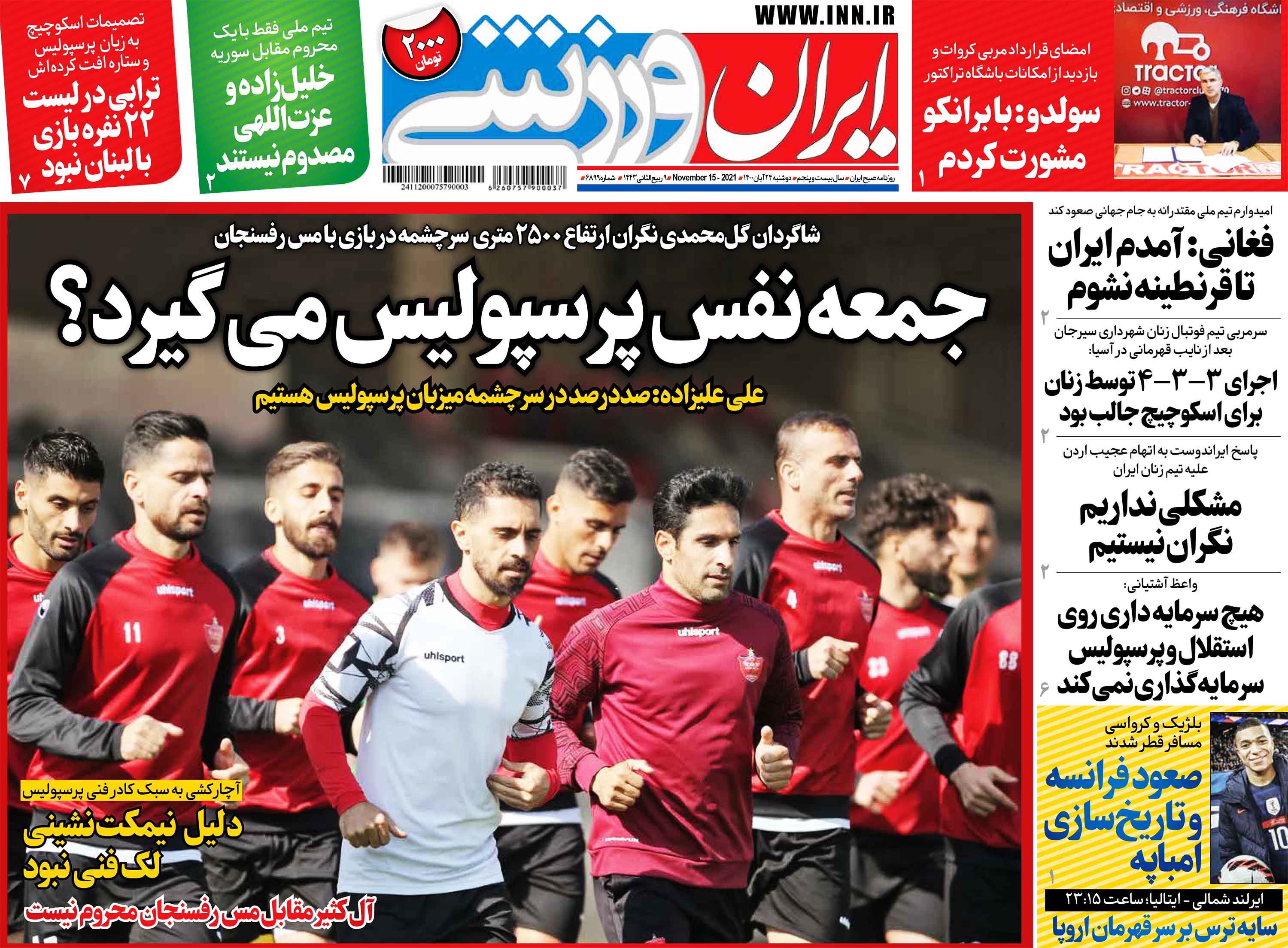 روزنامه ایران ورزشی - دوشنبه 24 آبان 1400 | ورزش سه
