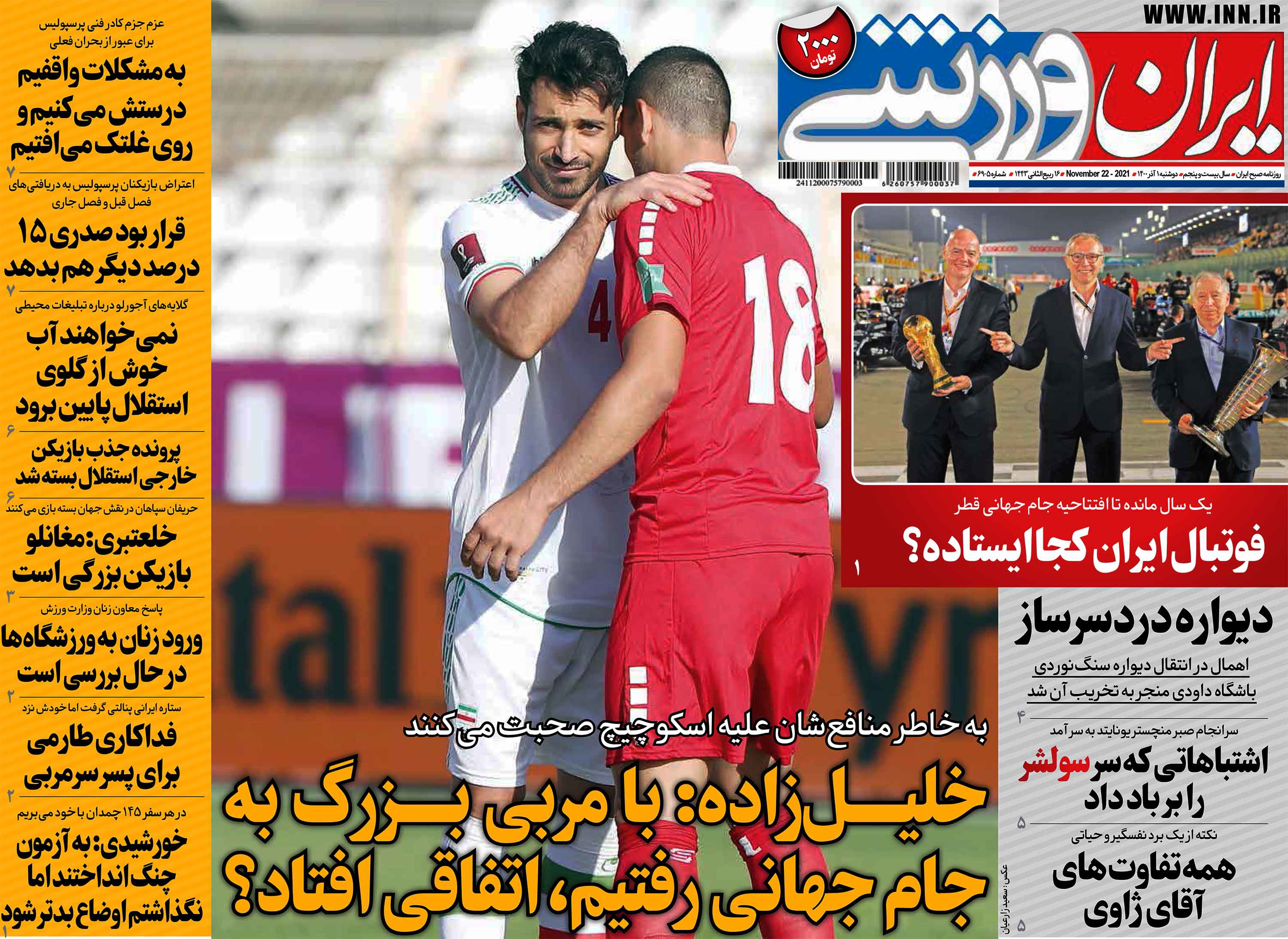 روزنامه ایران ورزشی | دوشنبه 1 آذر 1400