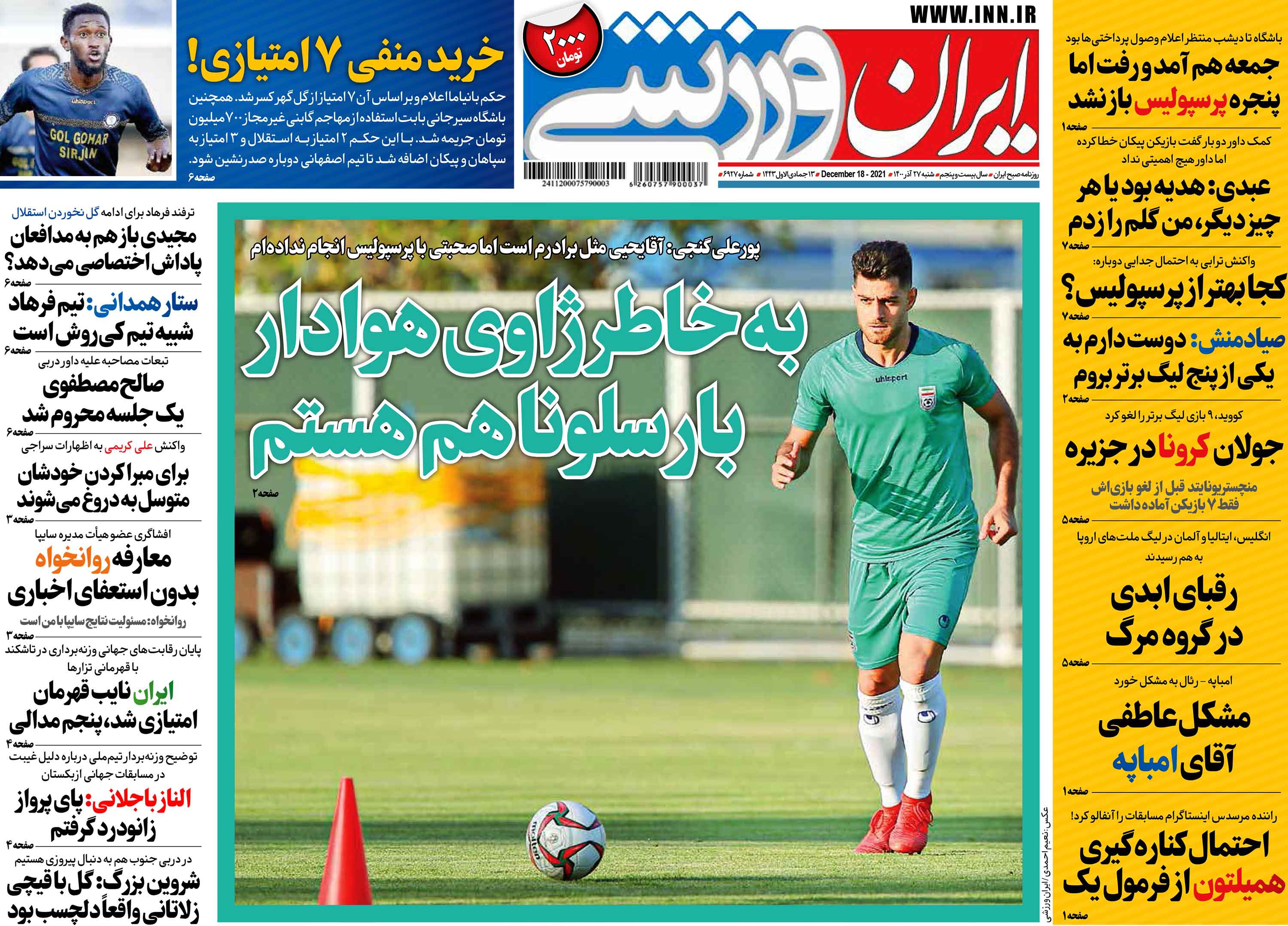 روزنامه ایران ورزشی - شنبه 27 آذر 1400 | ورزش سه