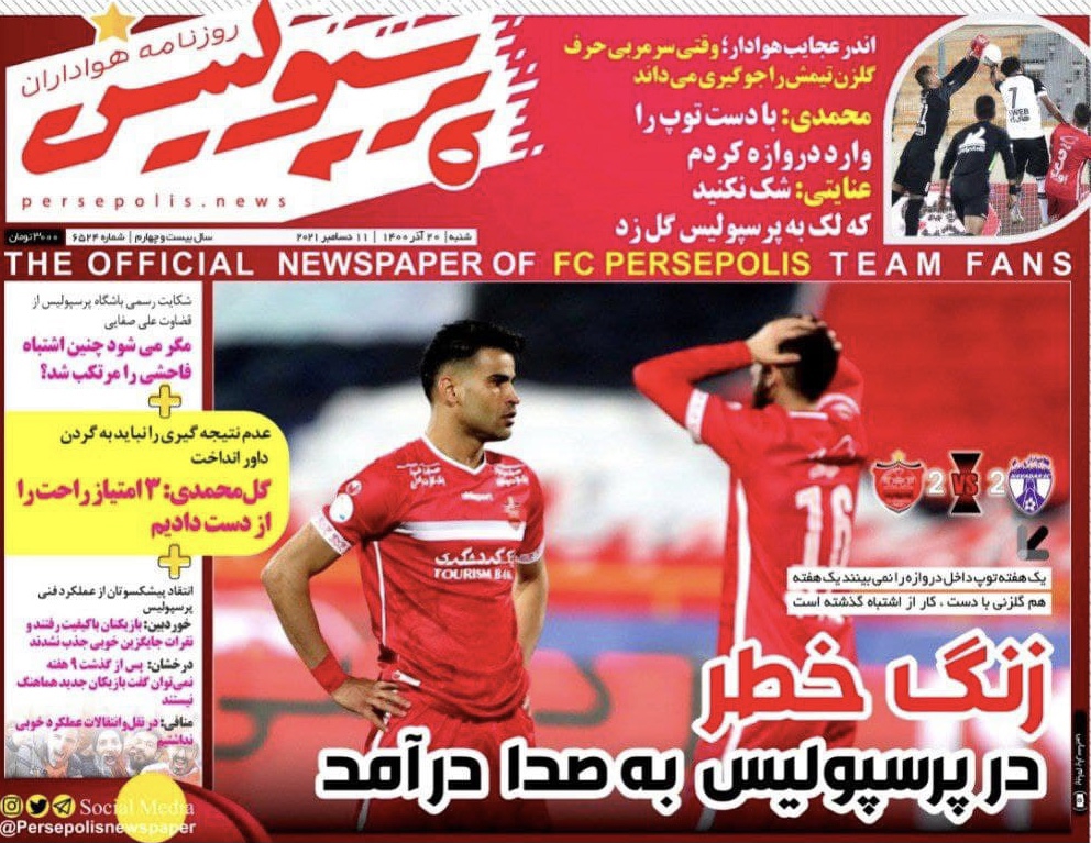 روزنامه پرسپولیس - شنبه 20 آذر 1400 | ورزش سه