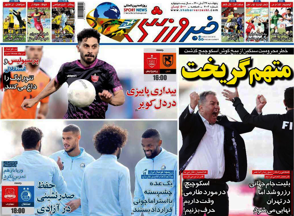 روزنامه خبر ورزشی - پنج شنبه 27 آبان 1400 | ورزش سه