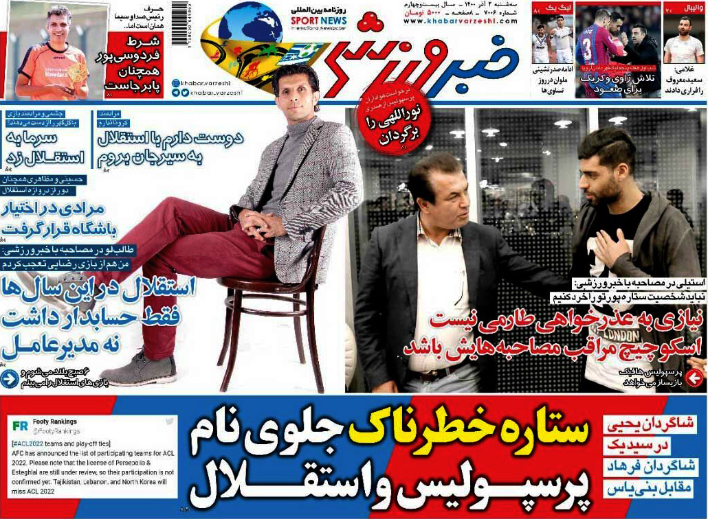 روزنامه خبر ورزشی - سه شنبه 2 آذر 1400 | ورزش سه