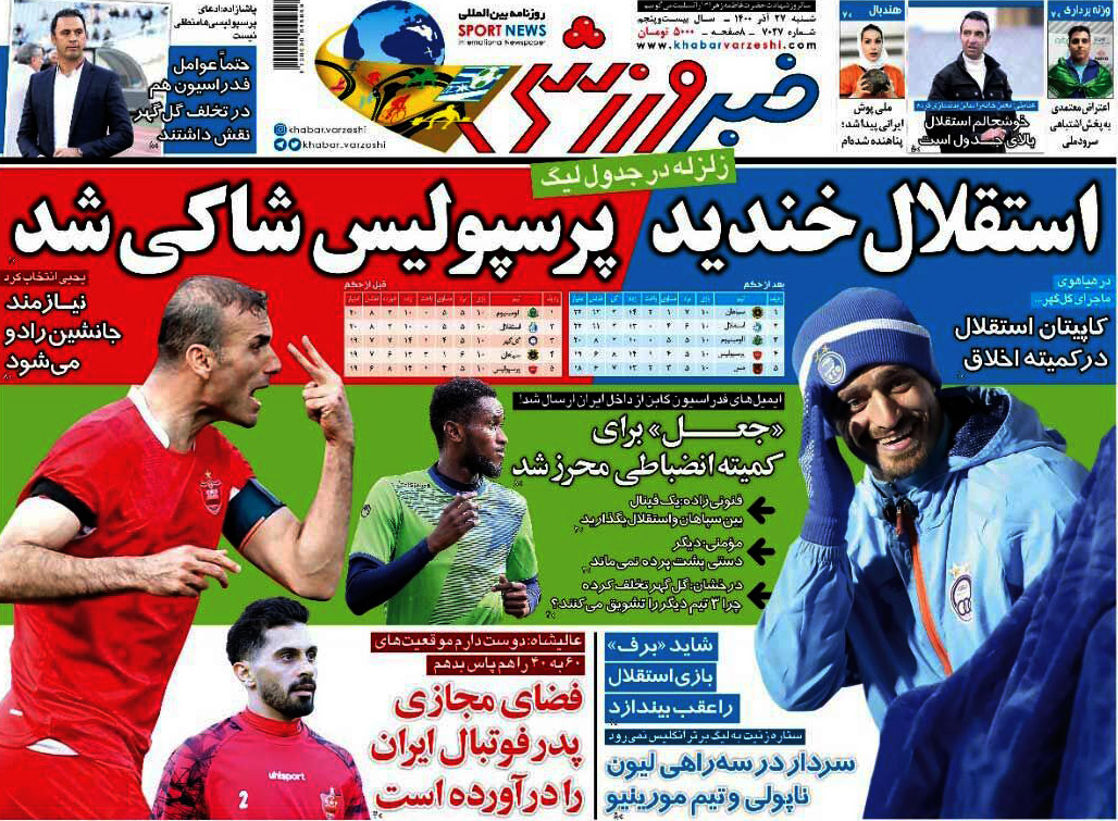 روزنامه خبر ورزشی - شنبه 27 آذر 1400 | ورزش سه